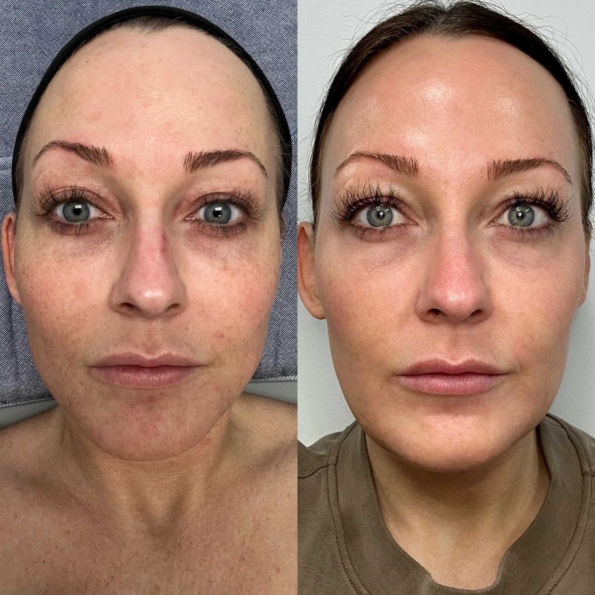 *Patient is 38 y.o. with freshly-cleaned skin and no other products used in photos. Revision Skincare® preparatory + post care products were provided and used as directed before and after treatment for optimal results. Photos are unedited.